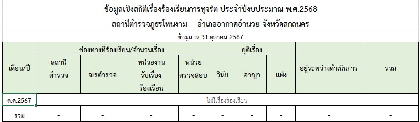 1.ข้อมูลสถิติเรื่องร้องเรียนการทุจริตประจำเดือน ตุลาคม 2567 ประจำปีงบประมาณ 2568