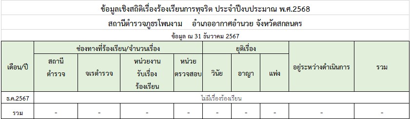 3.ข้อมูลสถิติเรื่องร้องเรียนการทุจริตประจำเดือน ธันวาคม 2567 ประจำปีงบประมาณ 2568