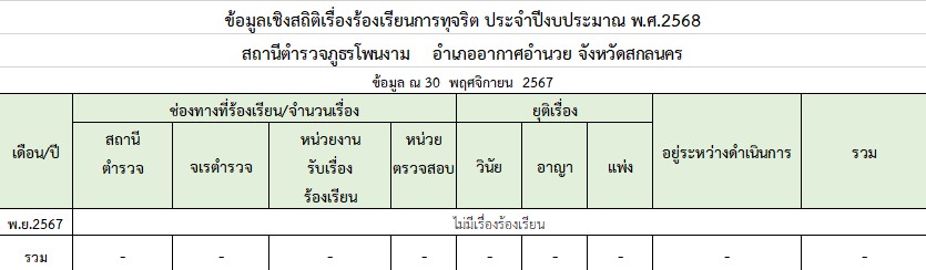 2.ข้อมูลสถิติเรื่องร้องเรียนการทุจริตประจำเดือน พฤศจิกายน 2567 ประจำปีงบประมาณ 2568