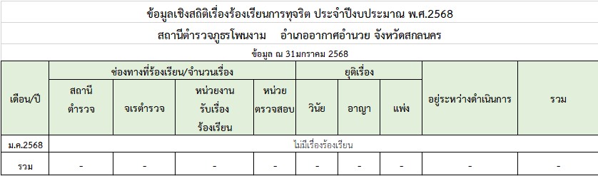 4.ข้อมูลสถิติเรื่องร้องเรียนการทุจริตประจำเดือน มกราคม 2568 ประจำปีงบประมาณ 2568