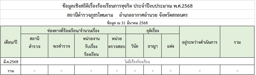 6.ข้อมูลสถิติเรื่องร้องเรียนการทุจริตประจำเดือน มีนาคม 2568 ประจำปีงบประมาณ 2568